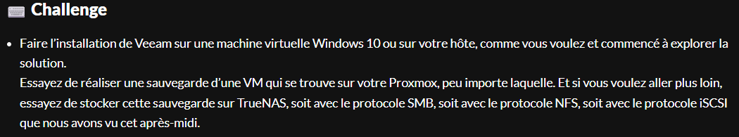 - Installation Veeam Backup & Replication https://help.ovhcloud.com/csm/fr-public-cloud-storage-veeam-backup-replication?id=kb_article_view&sysparm_article=KB0046511