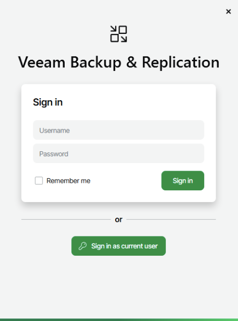 Puis sign in as current user (Veeam utilisera les identifiants de notre session Windows actuelle pour ouvrir l'interface de gestion)