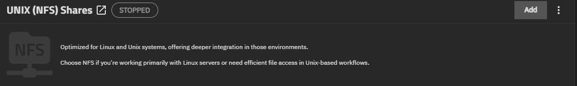 Sur TrueNAS on va créer un dossier de partage UNIX (NFS)