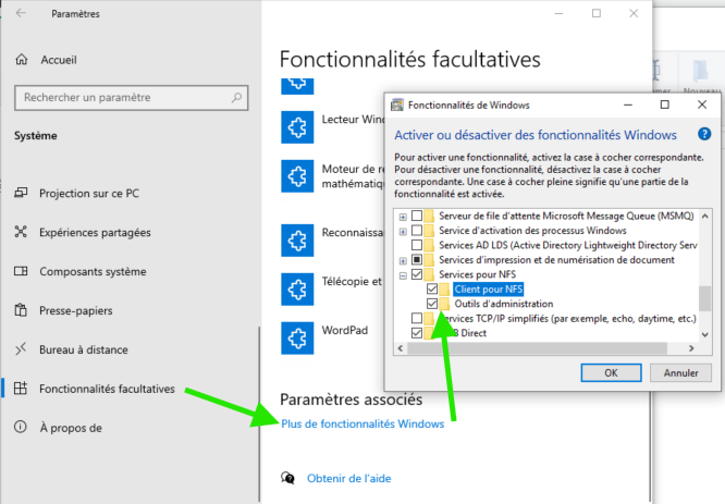 Avant ça on va activer les fonctionnalités Windows : Services NFS