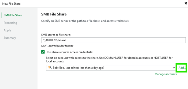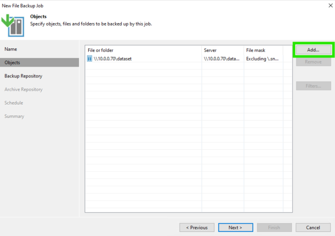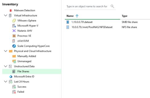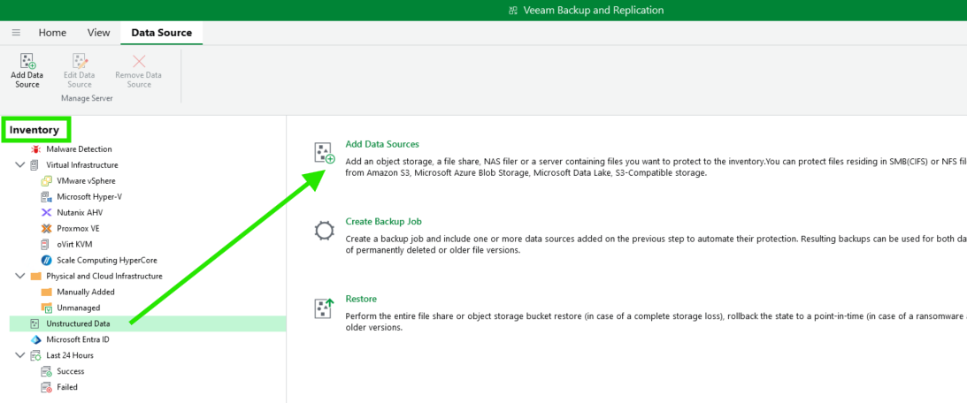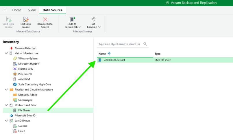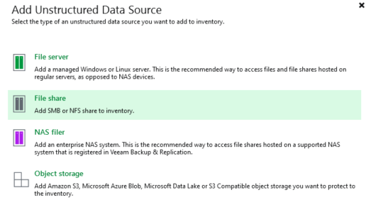 Dans Veeam on va dans Inventory : Unstructured Data et Add Data Source