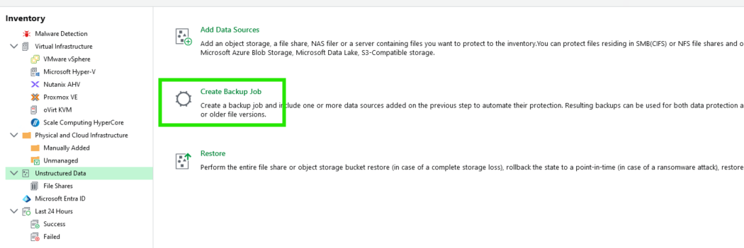 On va Create Backup Job dans Unstructured Data