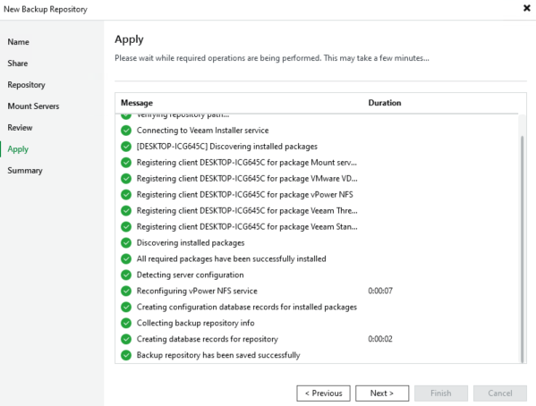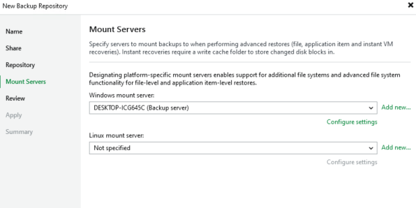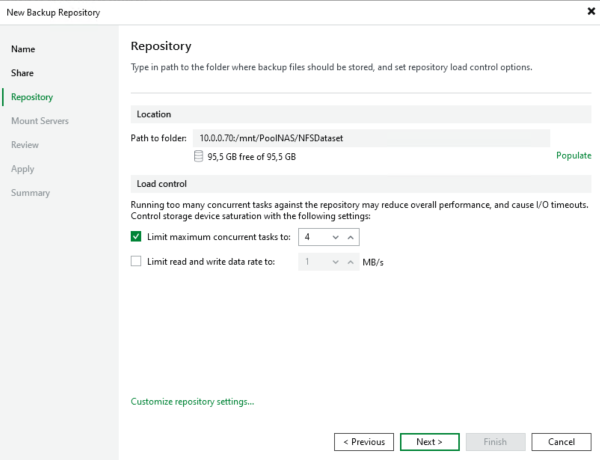 On va maintenant pouvoir ajouter un Backup Repository dans la Backup Infrastructure : NFS Share