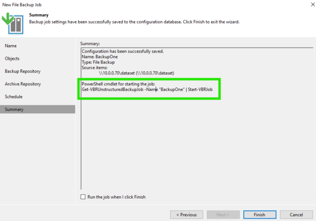 On laisse l'Archivage, on peut choisir le calendrier et l'automatisation. A la validation, il nous donne la Cmdlet pour lancer ce Backup job depuis un script