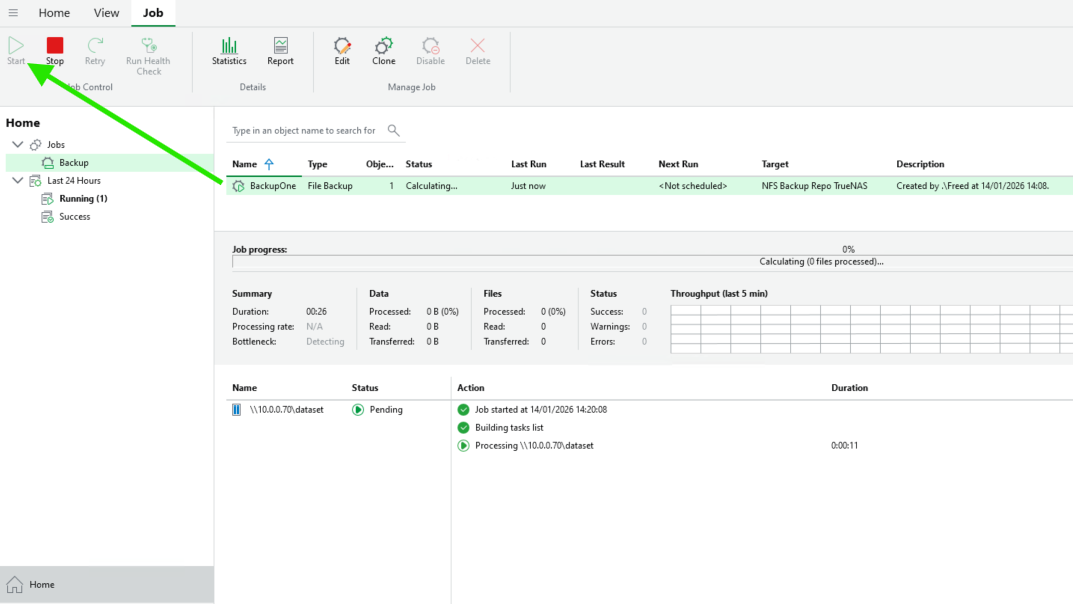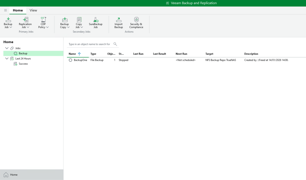 On peut retrouver notre Backup Job sur l'écran Home