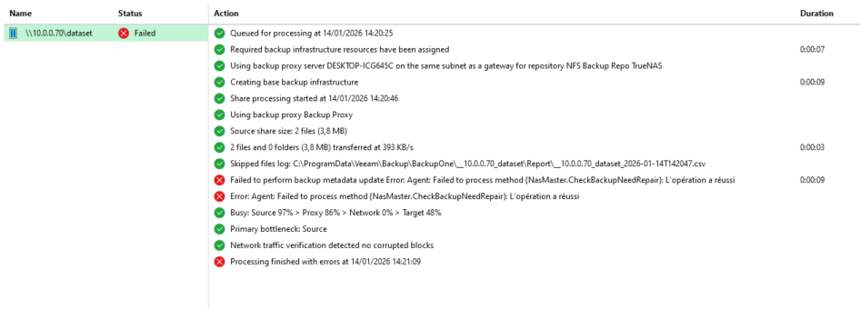 Attention, on a parfois des erreurs d'Agent, mais la Backup existe quand mĂŞme