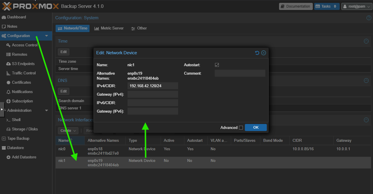 On va configurer notre seconde IP réseau (vmbr1/nic1) et faire Apply Configuration