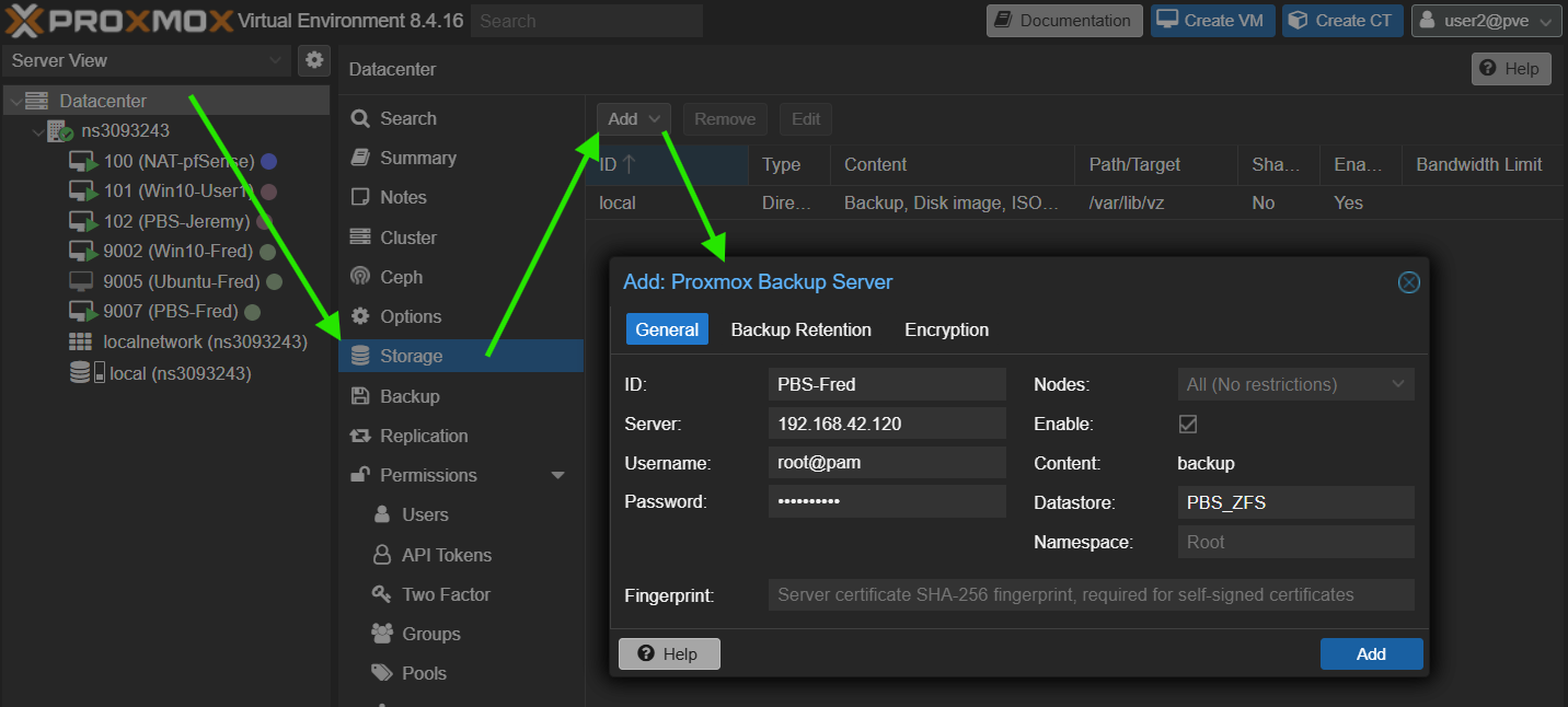 On va aller sur notre ProxmoxVE, pour connecter notre PBS