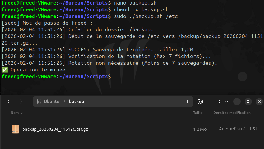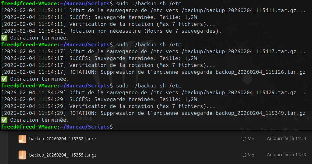 - **Usage :** `./backup.sh <dossier_source>`