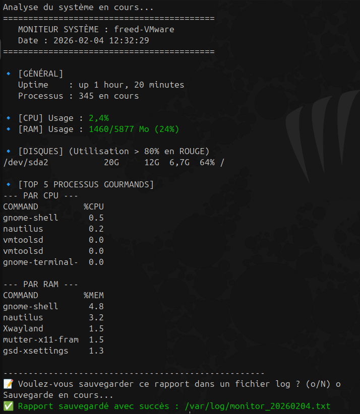 - **Usage :** `./monitor.sh [report]`