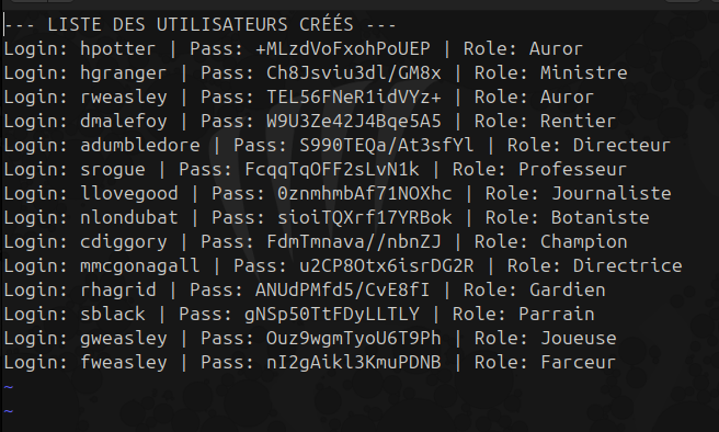 - **Fonctionnalités :** Création comptes, groupes, mots de passe aléatoires, suppression.