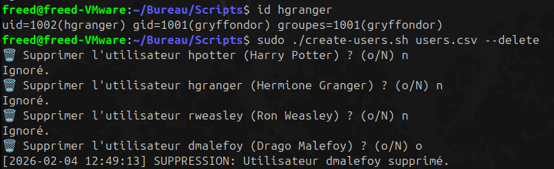 - **Usage :** `./create-users.sh <fichier.csv> [--delete]`