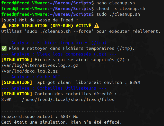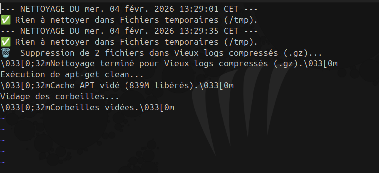 - **Cibles :** Cache APT, /tmp, logs > 30 jours, corbeilles.
