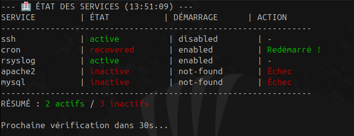 - `services.conf` : Liste des noms de services Ă surveiller.