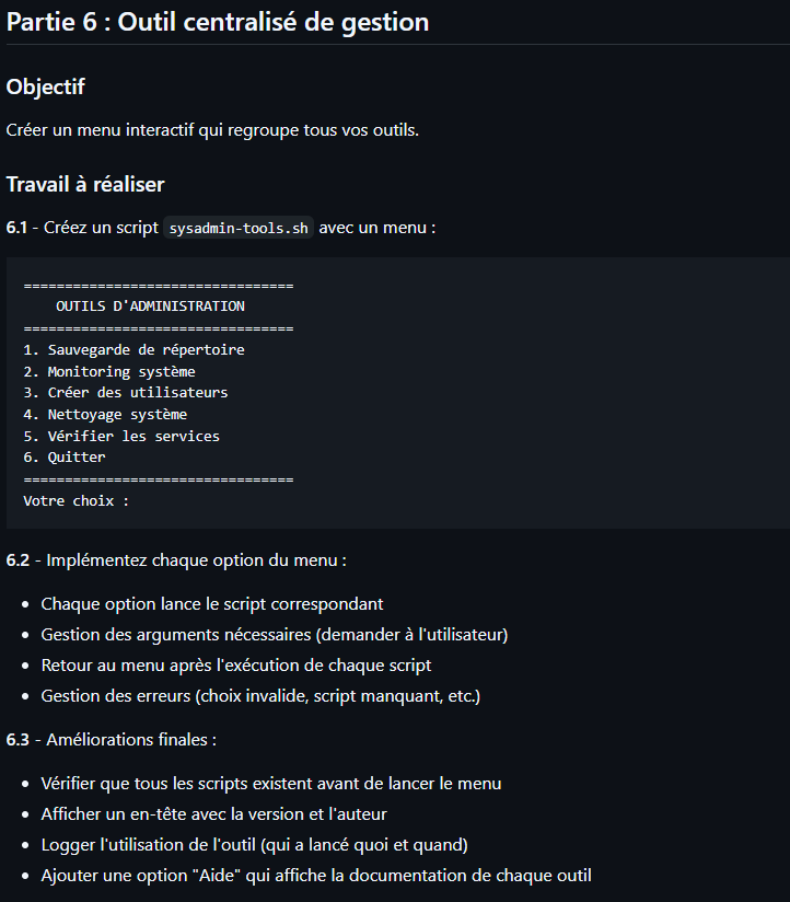 echo "1. backup.sh : Crée une archive .tar.gz dans /backup avec rotation (7 max)."