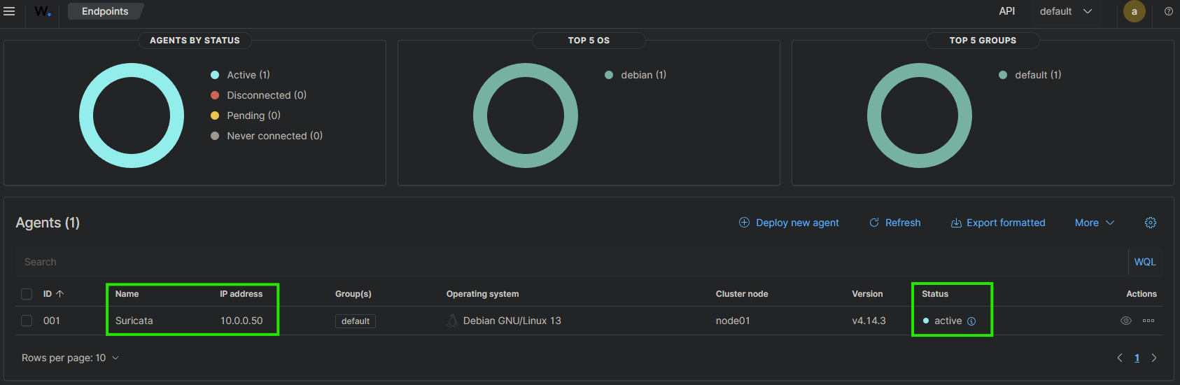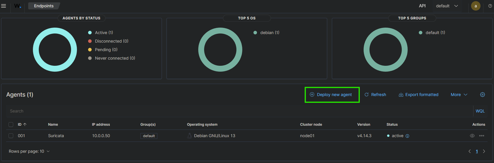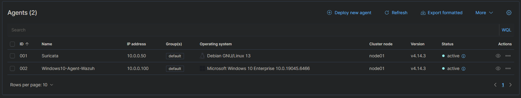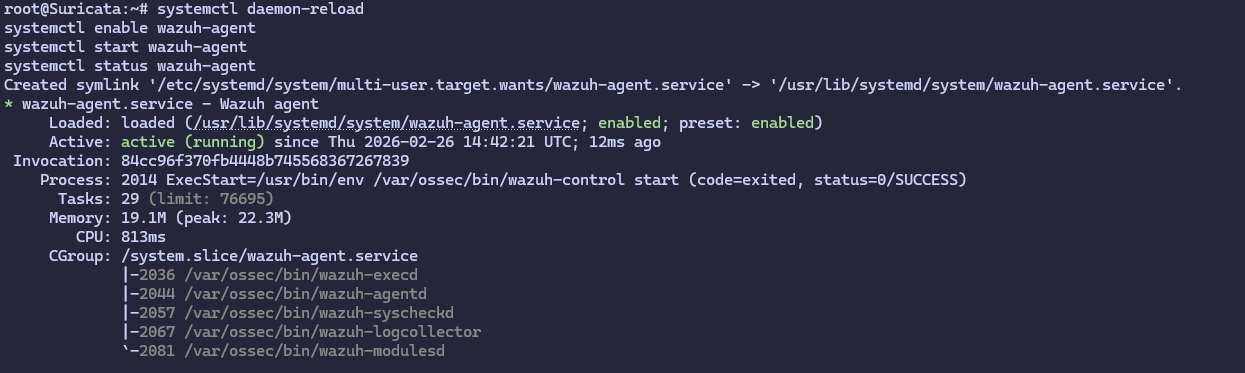 L'agent Wazuh est un programme léger qui collecte les logs locaux et les envoie au Manager. Depuis la machine Suricata (10.0.0.50) :
