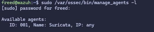 Pour vérifier la connexion de l'agent : /var/ossec/bin/manage_agents -l