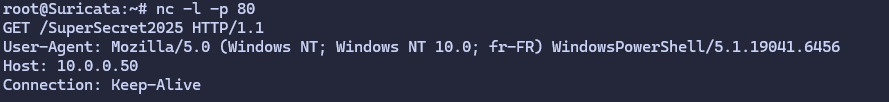 Depuis une machine du LAN on lance curl http://10.0.0.50/SuperSecret2025