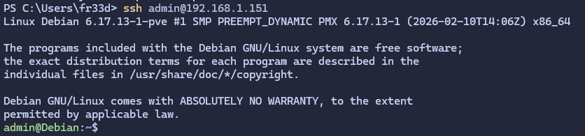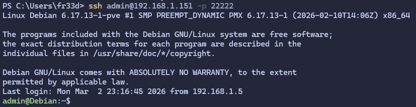 Pour se reconnecter on utilisera ssh admin@192.168.1.151 -p 22222