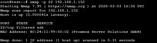 nmap -Pn --max-retries=0 --host-timeout=1000ms -p $port 192.168.1.152