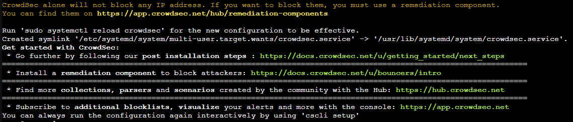 Une fois installé, CrowdSec détecte automatiquement les services présents sur la machine (comme SSH) et commence à surveiller leurs journaux.