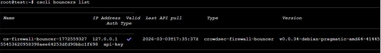 (On doit voir ton firewall-bouncer avec la coche valide ✔️).