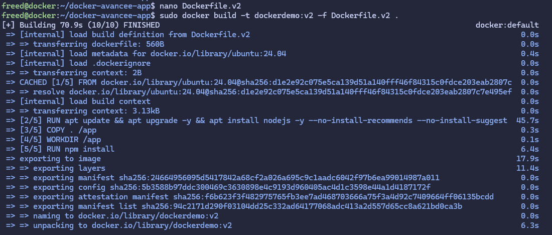 Build V2 : sudo docker build -t dockerdemo:v2 -f Dockerfile.v2 .