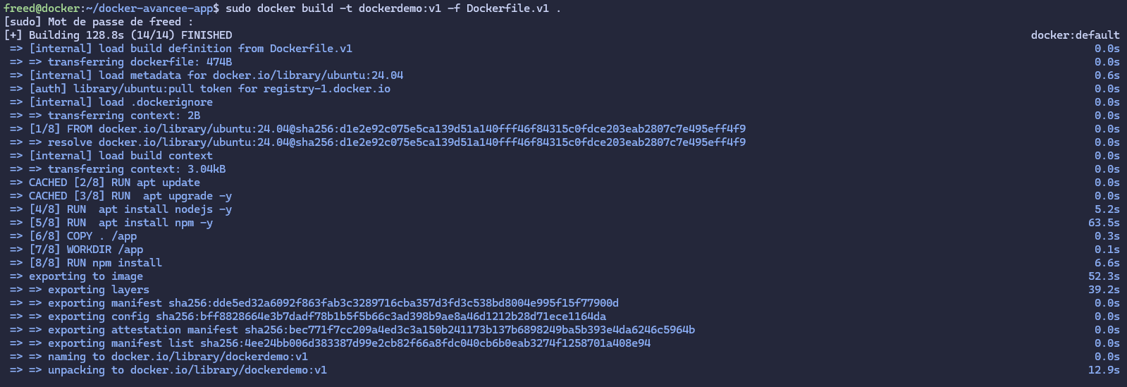sudo docker build -t dockerdemo:v1 -f Dockerfile.v1 .