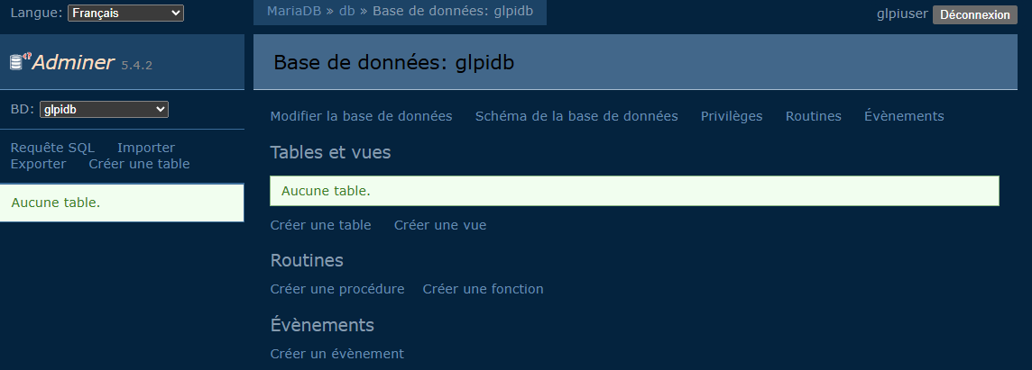 - Vérifiez que GLPI peut joindre MariaDB : le nom d'hÎte à utiliser est le nom du service