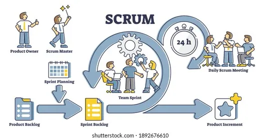 - Scrum = Cadre de travail avec des Rôles (PO, SM, Dev), des Rituels (Daily, Review...) et des Sprints.