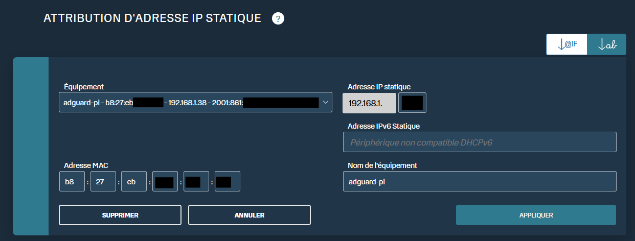 ⚠️ Procédure critique : désactiver le DHCP de la box puis activer immédiatement celui d'AdGuard Home. Pendant la bascule, aucun appareil ne pourra obtenir de nouvelle adresse IP. Il est recommandé de garder une fenêtre SSH ouverte sur le Pi pour intervenir rapidement.