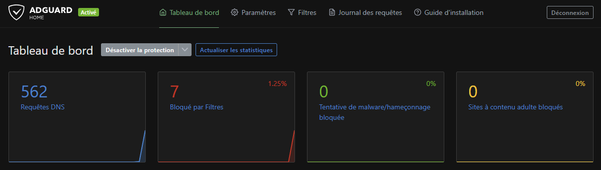 - Performance (Caching) : AdGuard Home conserve en cache les réponses DNS. Les requêtes suivantes sont servies localement en ~1ms au lieu de ~20ms via un résolveur distant. Les domaines bloqués ne génèrent aucun trafic réseau.