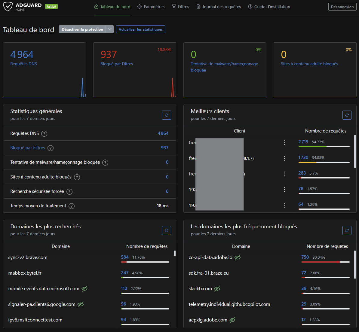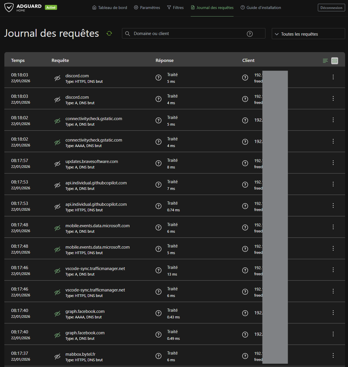 - Contrôle DHCP : En reprenant le rôle de serveur DHCP de la box FAI, AdGuard Home garantit que chaque appareil du réseau utilise exclusivement le DNS filtrant. Aucun contournement possible.